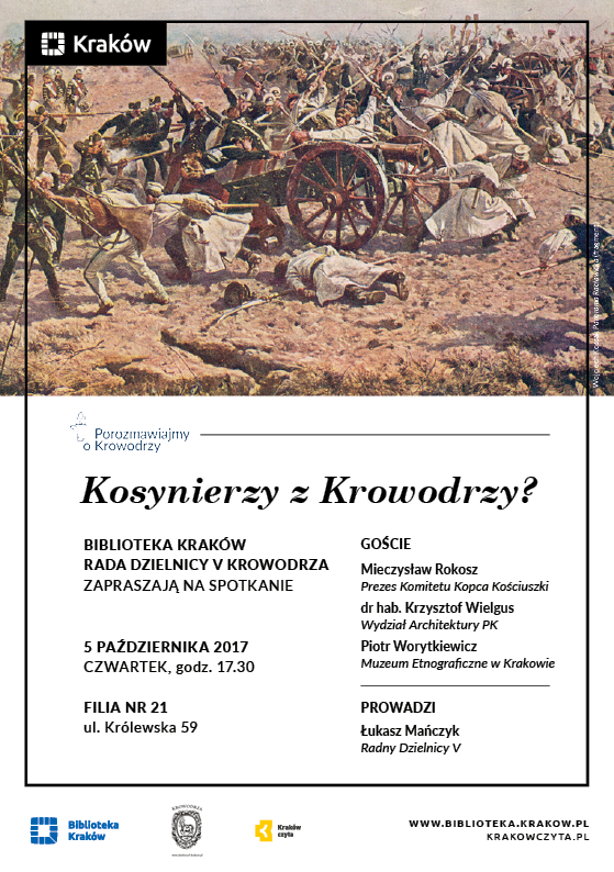 Zbliżają się też obchody 100-lecia odzyskania przez Polskę niepodległości. A ta niepodległość wymaszerowała jak wiadomo w 1914 roku z Oleandrów, czyli, mówiąc językiem dzisiejszego podziału na jednostki pomocnicze: niepodległość wyszła z Krowodrzy. Wśród gości rozmowy poświęconej kościuszkowskim śladom będzie Maria Huk, wnuczka porucznika Antoniego Stawarza który cztery lata później, w 1918 roku, dowodził rozbrajaniem Austriaków.