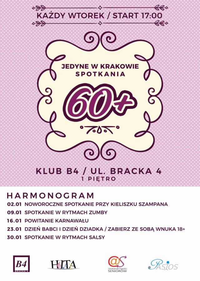 Klub B4 przy Brackiej 4 zaprasza na nowy cykl spotkań 60+ w kolejne wtorki od godziny 17. Wstęp bezpłatny.