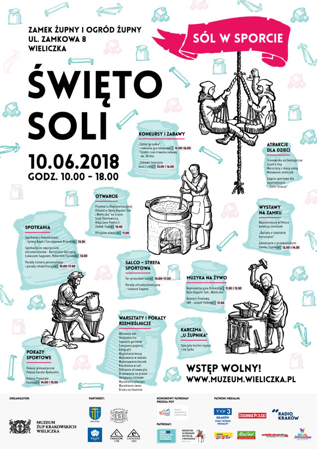 Muzeum Żup Krakowskich Wieliczka zaprasza na rodzinną imprezę „Święto Soli” 10 czerwca w godz. 10.00-18.00 do Zamku Żupnego w Wieliczce.