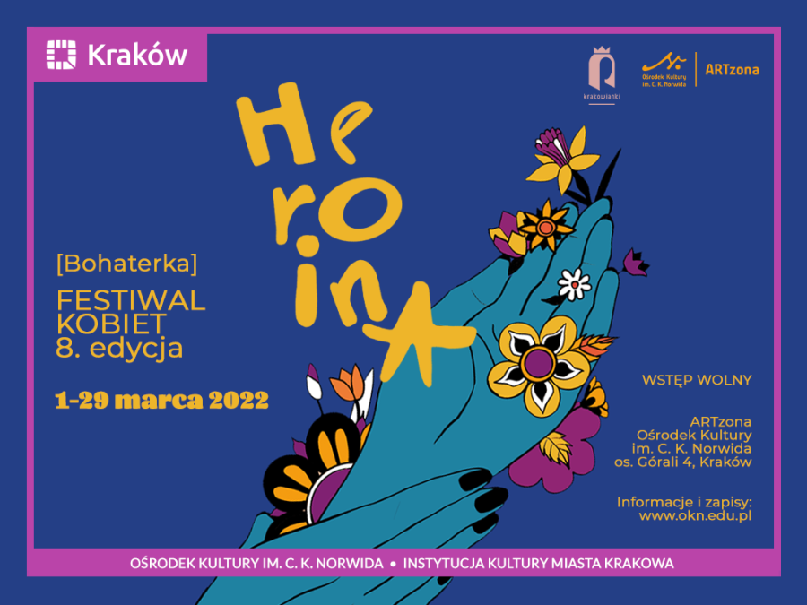 Jak pośród zgiełku codziennego życia odnaleźć spokój i szczęście? ARTzona Ośrodka Kultury im. C.K. Norwida w Krakowie wychodzi naprzeciw kobietom, które pragną zadbać o siebie i swój rozwój. Po raz ósmy organizuje wyjątkowy festiwal, tworzony przez kobiety i dla kobiet – „Heroina. Bohaterka”. Podczas trwającego niemal cały miesiąc (1-29 III 2022) wydarzenia odbędzie się kilkanaście bezpłatnych spotkań i warsztatów skierowanych do pań.