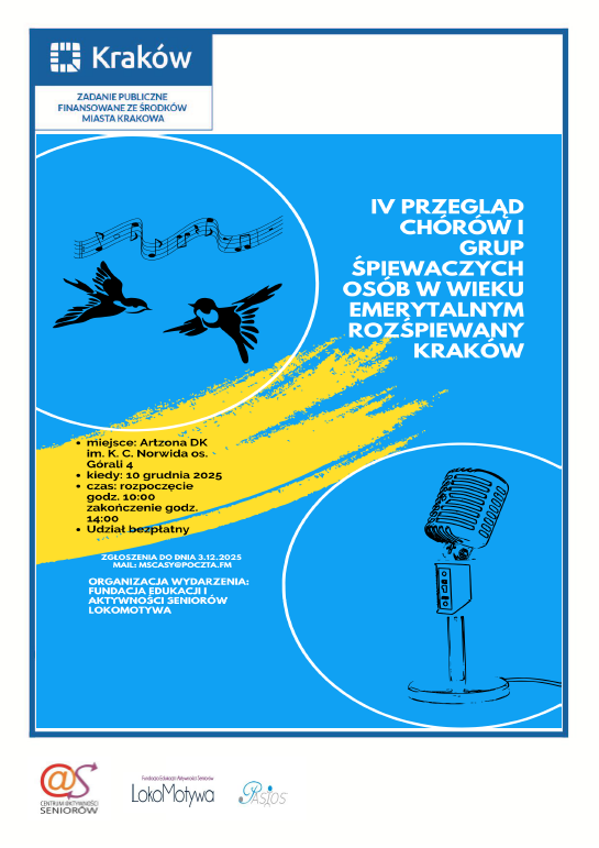 Przegląd „Rozśpiewany Kraków” adresowany jest do mieszkańców Krakowa w wieku 60+, udział chórów i zespołów śpiewaczych jest bezpłatny.
