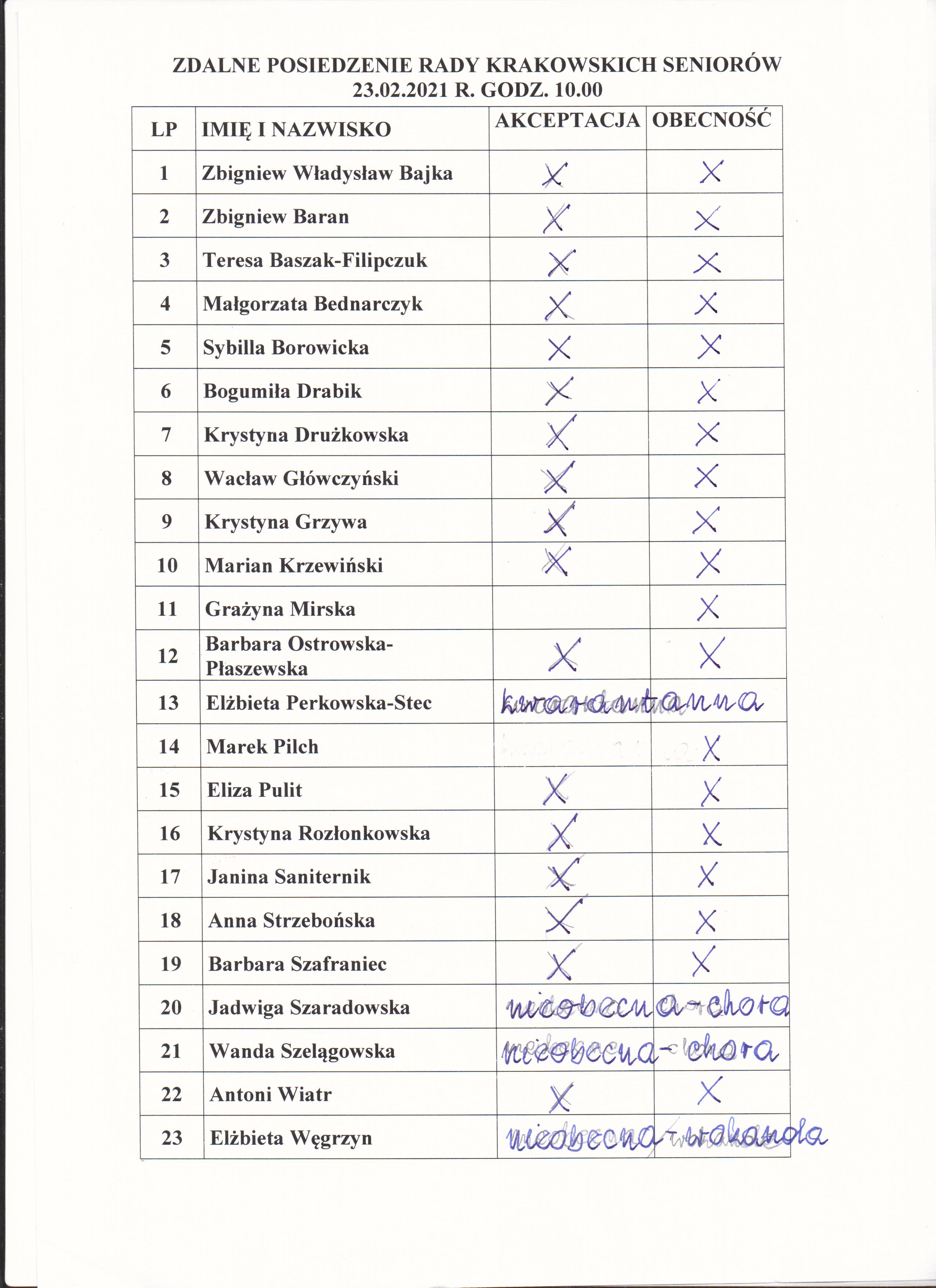 Zapraszamy do zapoznania się z dokumentami ze zdalnego posiedzenia Rady Krakowskich Seniorów 23 lutego 2021 roku: