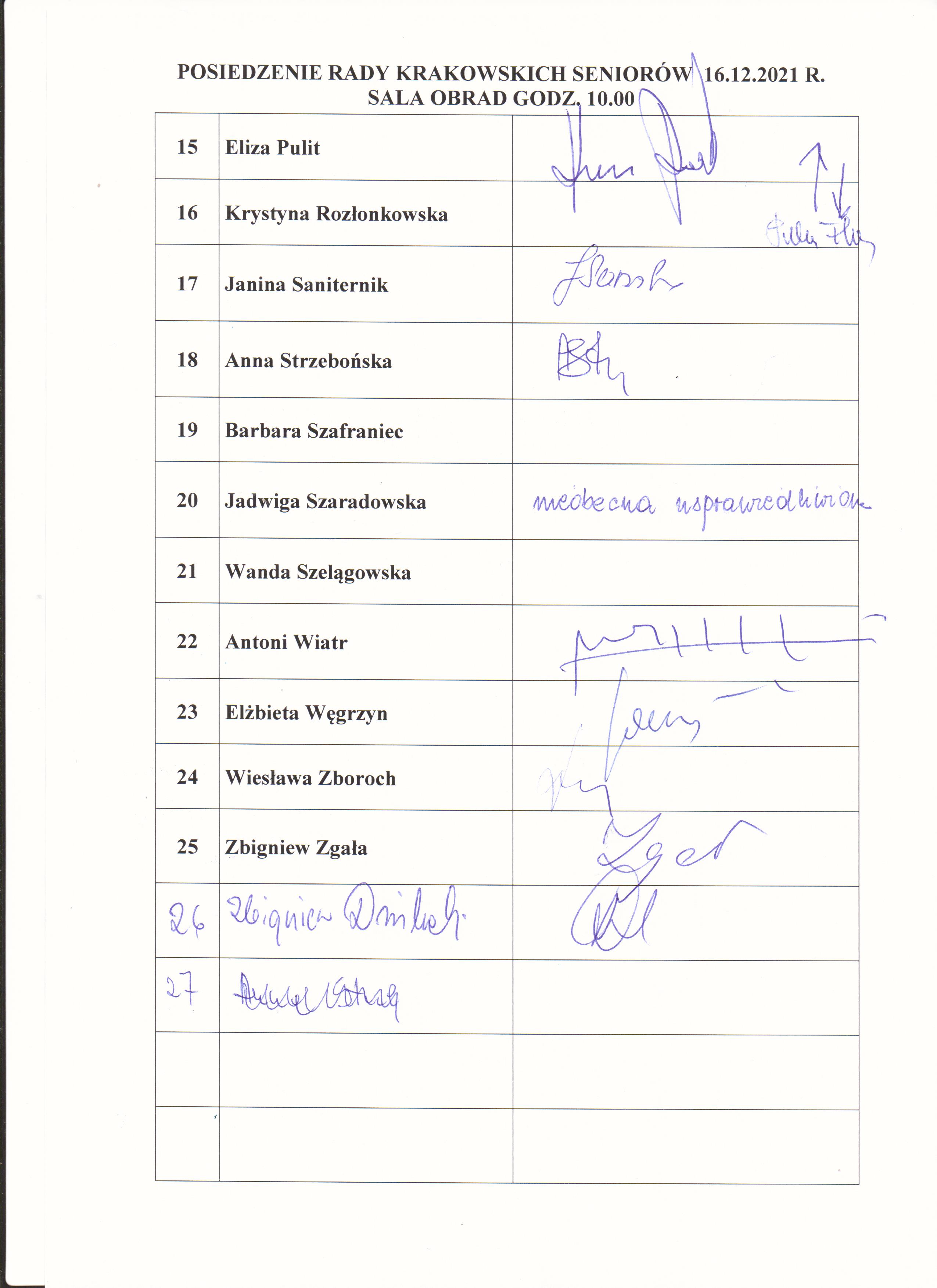 Posiedzenie Rady Krakowskich Seniorów 16 grudzień 2021 r.