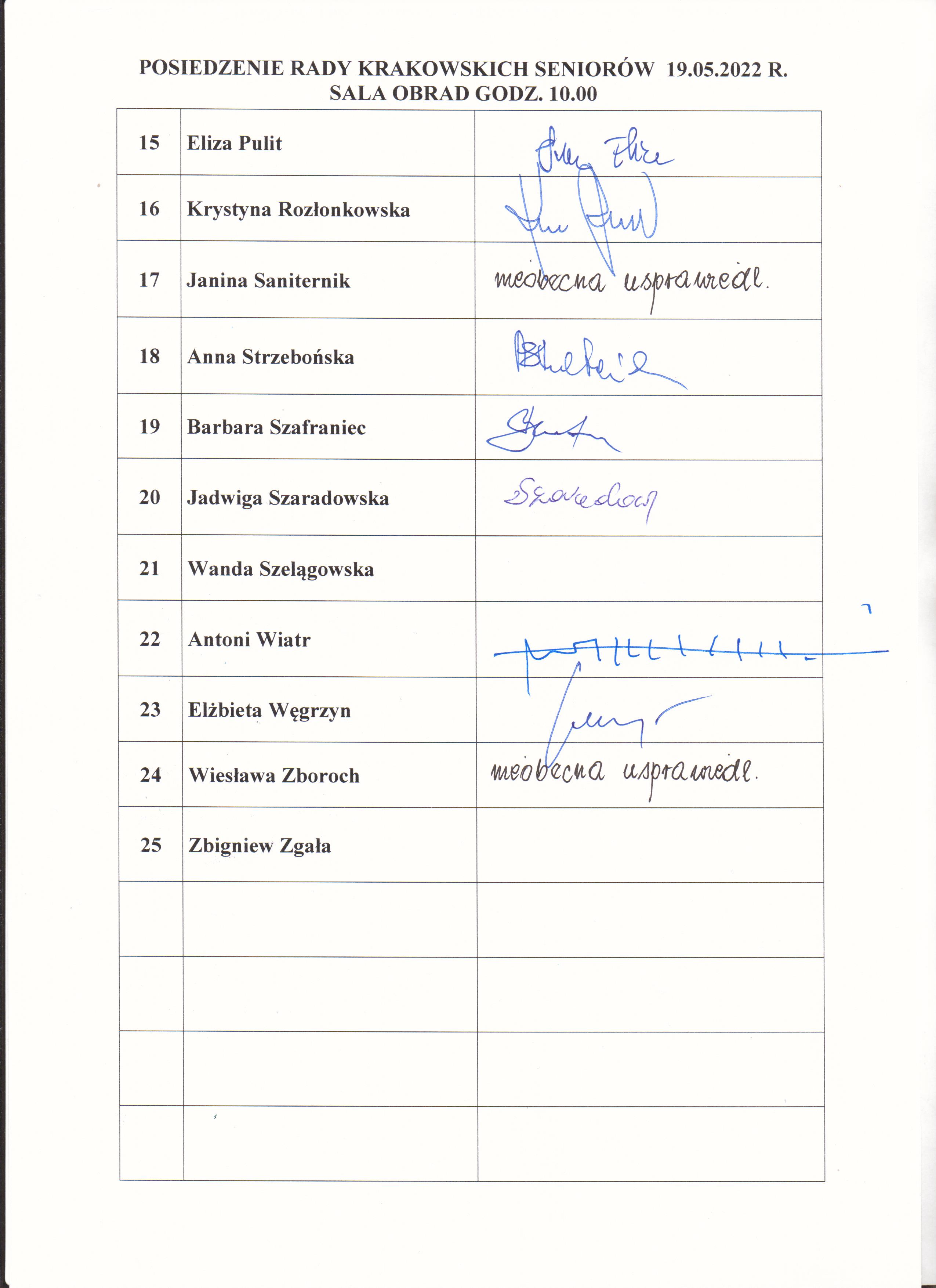 Posiedzenie Rady Krakowskich Seniorów 19.05.2022 r.