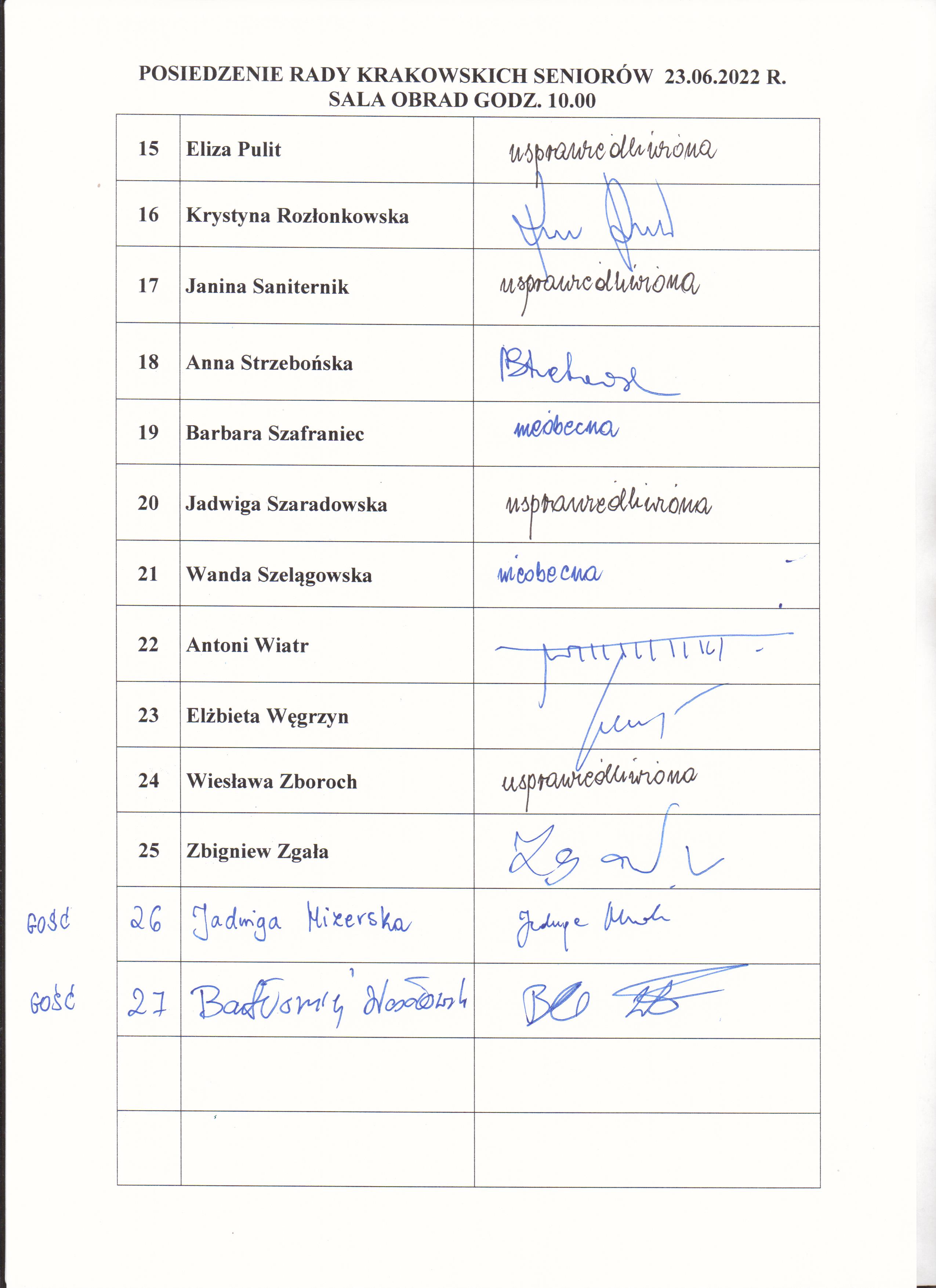 Posiedzenie Rady Krakowskich Seniorów 23.06.2022 r.