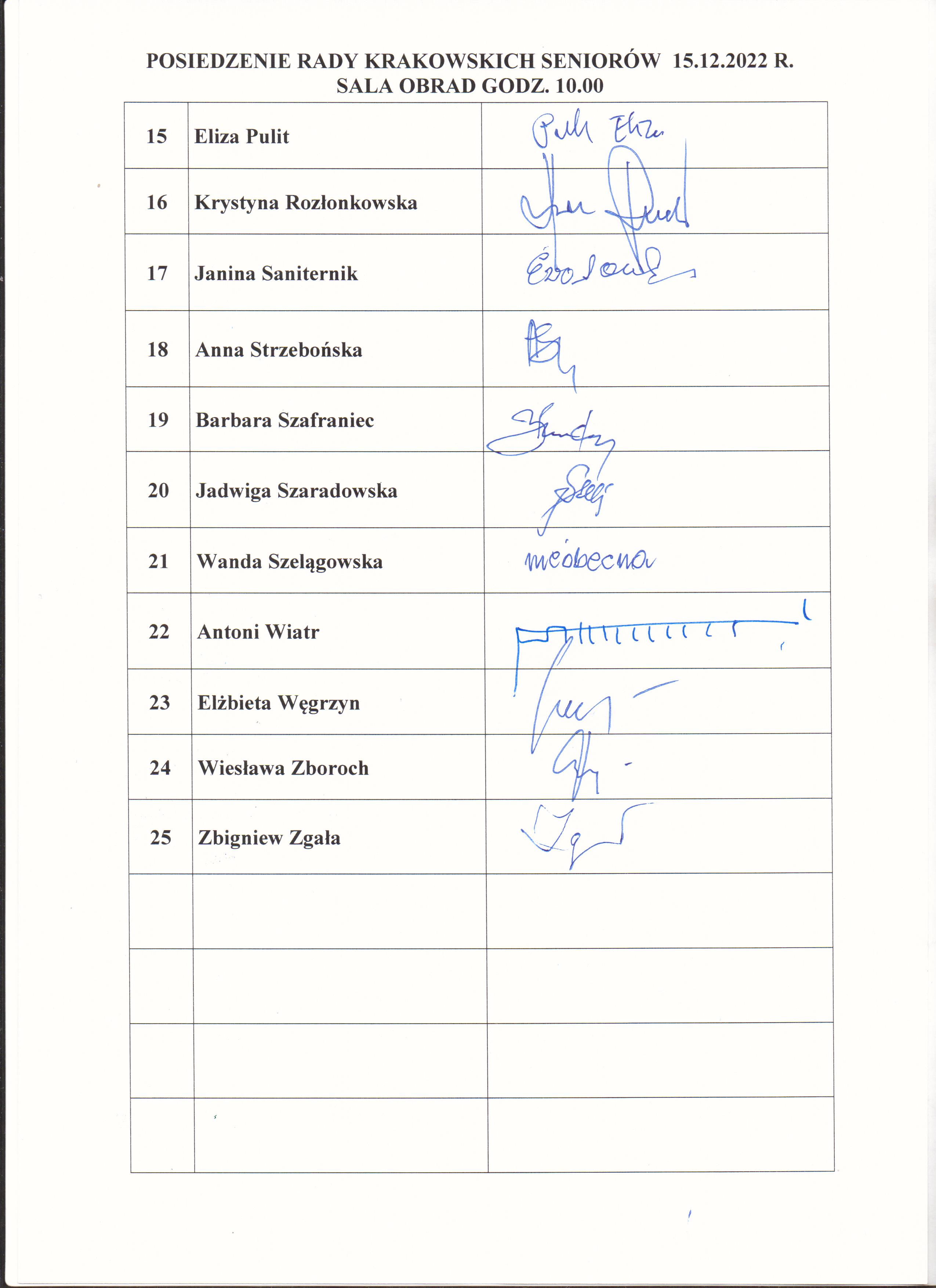 Posiedzenie Rady Krakowskich Senniorów 15.12.2022 r.