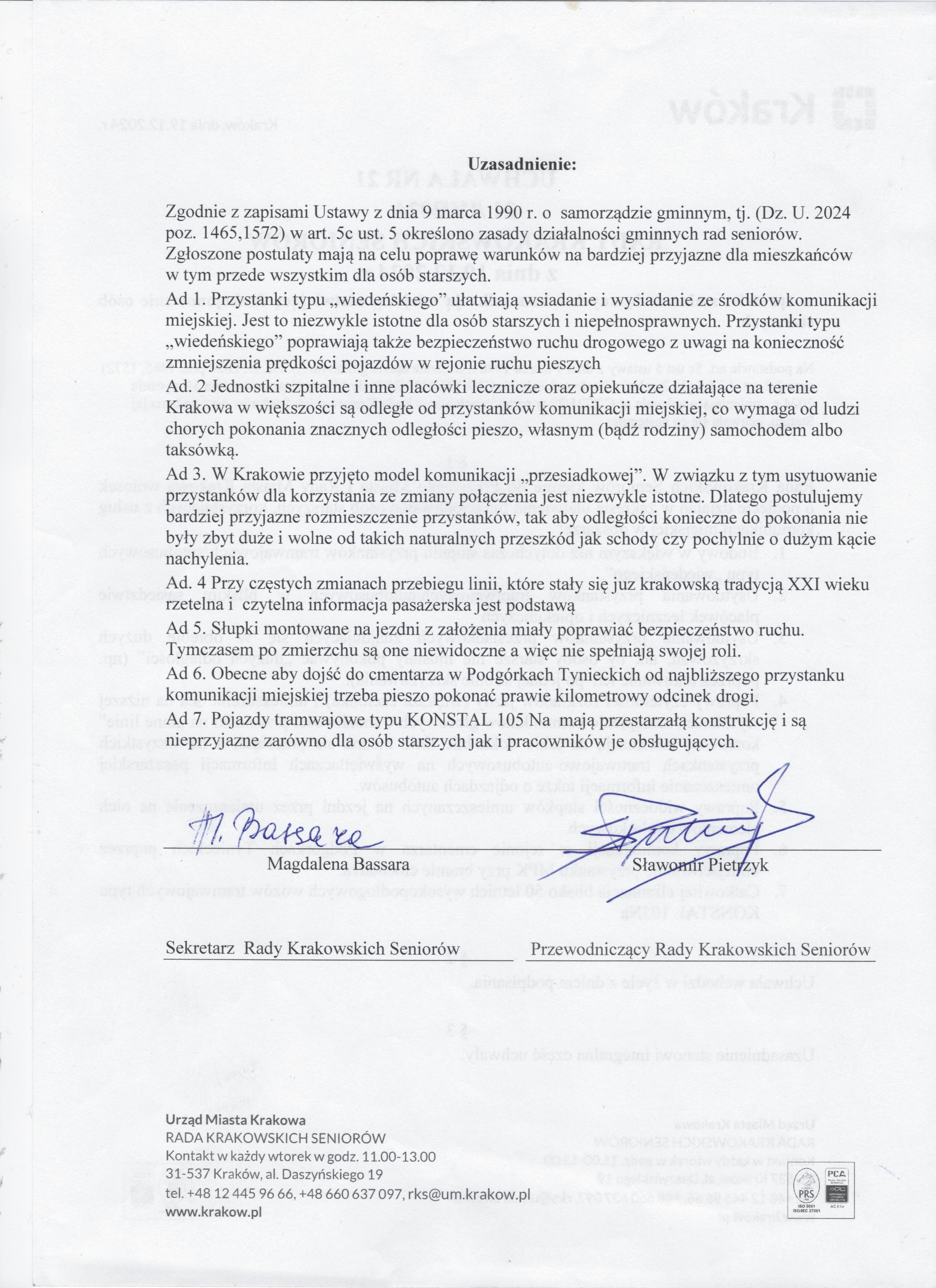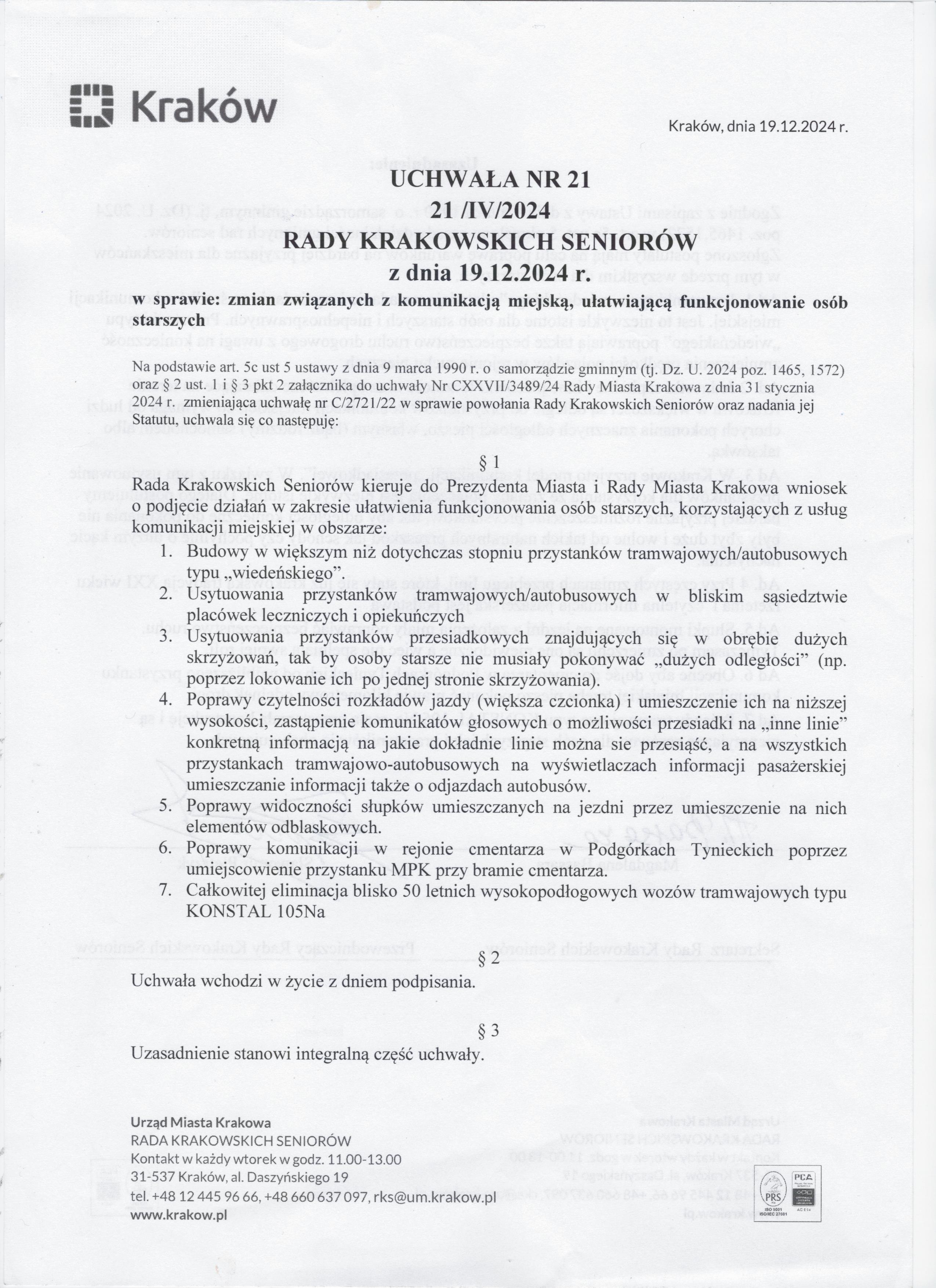 Poniżej przedstawiamy dokumenty z posiedzenia 21/IV/2024 Rady Krakowskich Seniorów IV kadencji:
