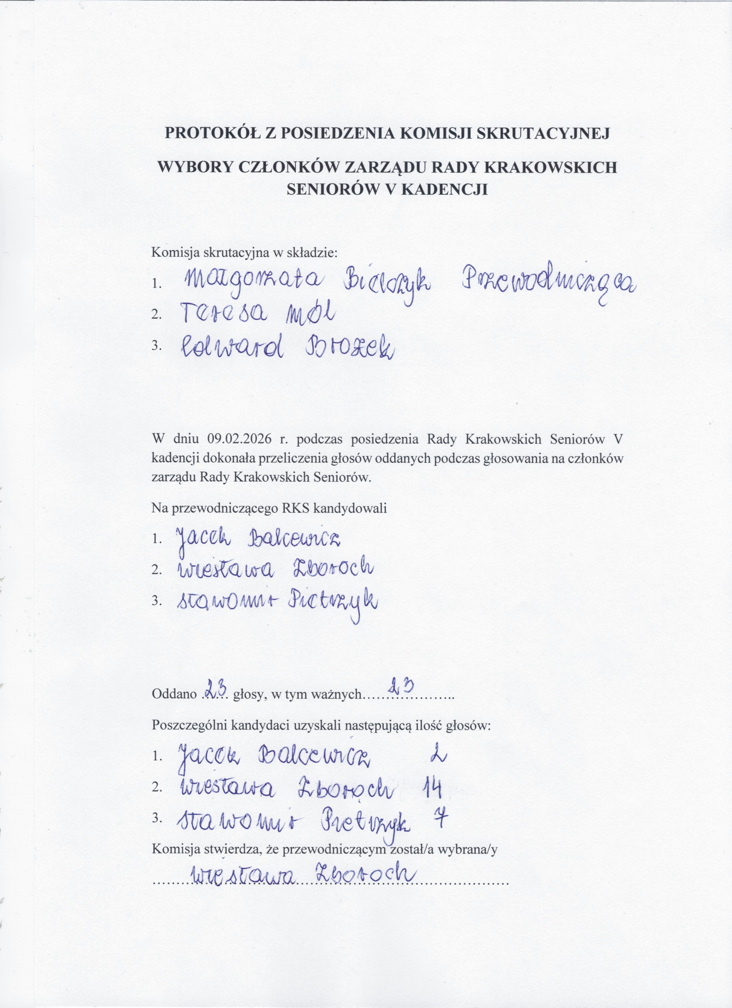 PROTOKÓŁ KOMISJI SKRUTACYJNEJ STR.1, 2, 3, 4.